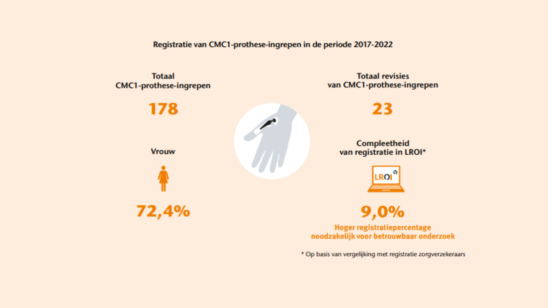 De huidige registratie van prothesen aan het duimbasisgewricht (CMC1) is veel te beperkt om betrouwbare uitspraken te doen over het resultaat van deze prothese-ingrepen. Een hoger percentrage geregistreerde CMC1-prothese-ingrepen is van belang om op bewijs gebaseerde beslissingen te kunnen nemen en goed onderzoek mogelijk te maken. Hoe completer de registratie hoe geschikter de data zijn voor onderzoek en hoe beter de bewijslast.